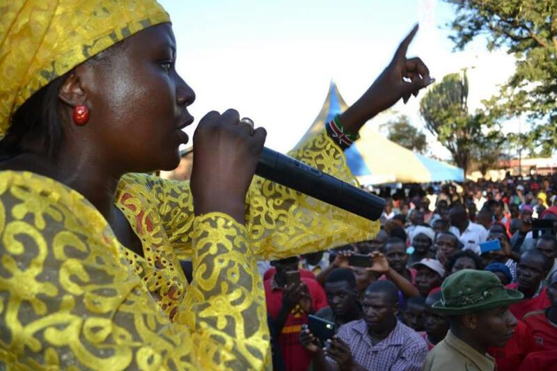 | Cecily Mbarire addresses a public gathering during happier times, on her campaign trail |